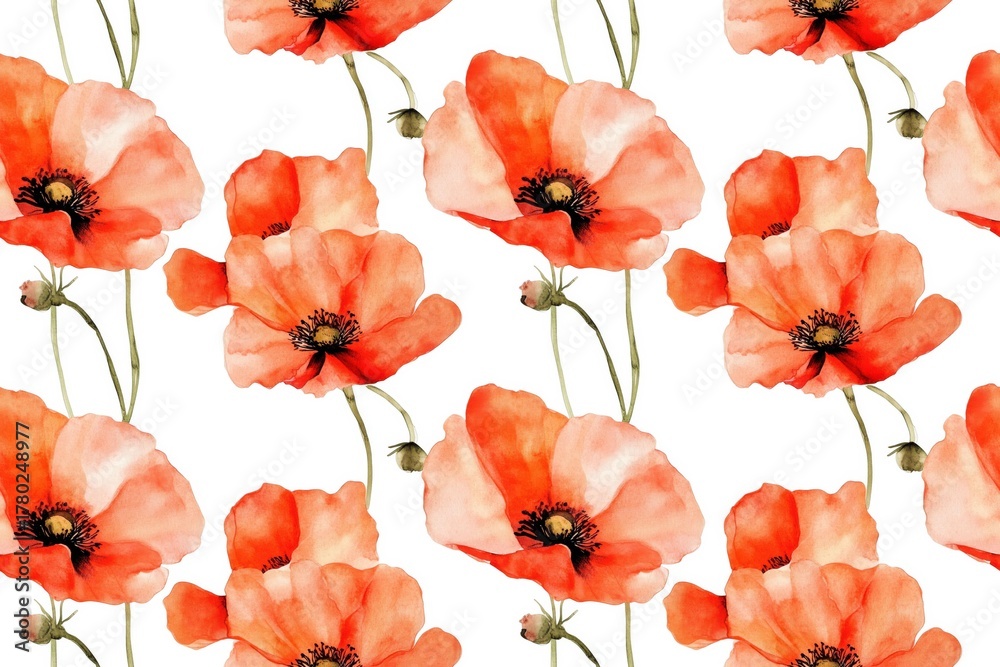 Artistic Watercolor Poppies Floral Pattern Wallpaper Mural - Decorly Solutions | Decorly Solutions