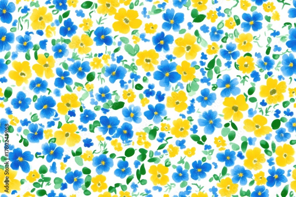 Vibrant Floral Pattern Featuring Blue And Yellow Flowers Wallpaper Mural - Decorly Solutions | Decorly Solutions