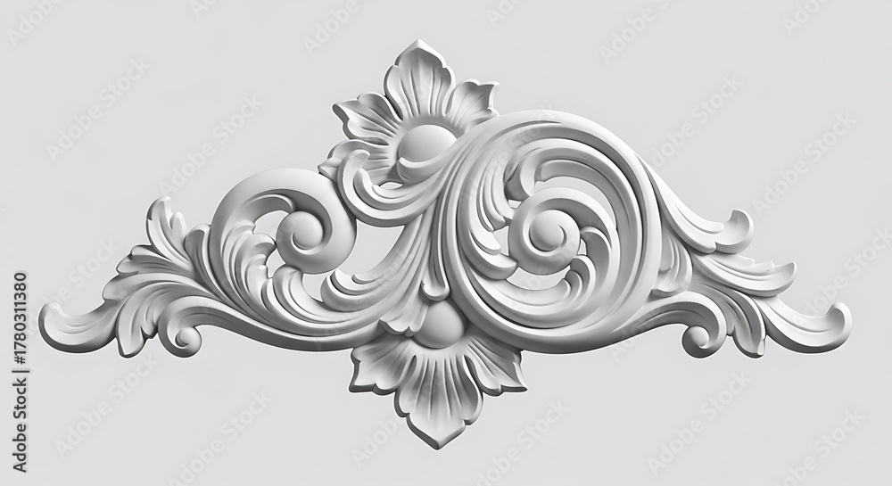 Elegant Floral Ornament Design In Relief With Symmetrical Details For Decor