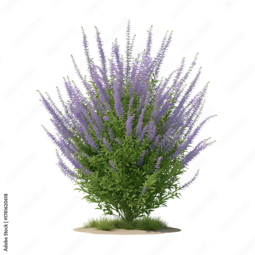 A beautiful blooming lavender plant with vibrant purple flowers, isolated on transparent background