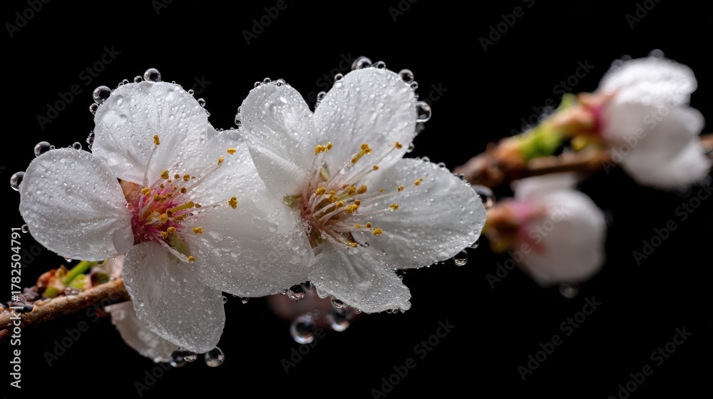 Cherry Blossoms Glisten With Dew Wallpaper Mural - Decorly Solutions | Decorly Solutions