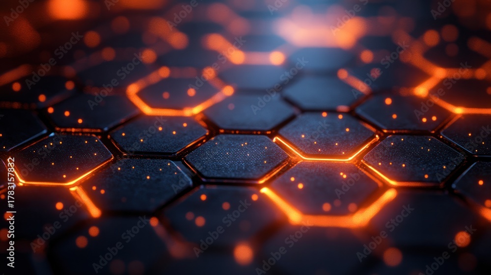 Futuristic Network Visualization With Hexagonal Shapes And Glowing Connections Symbolizing Data Flow