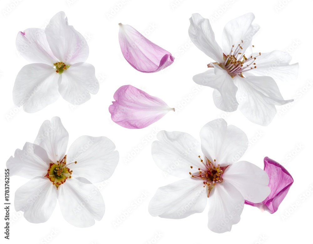 A beautiful set of pink and white cherry blossom flowers isolated on white, capturing the spring nature of the blooming tree branch