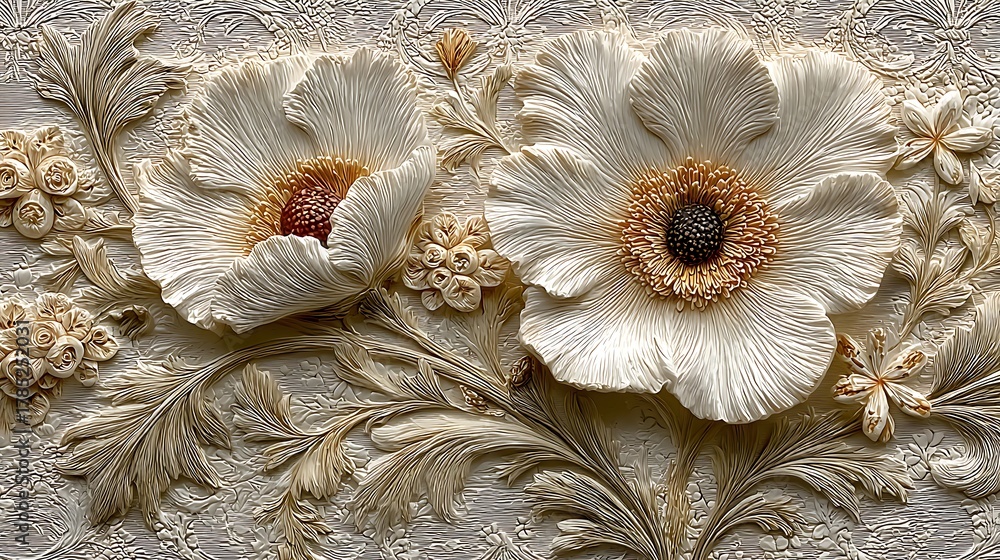 Luxury Embossed Flower Pattern For Interiors High Resolution Wallpaper Mural - Decorly Solutions | Decorly Solutions