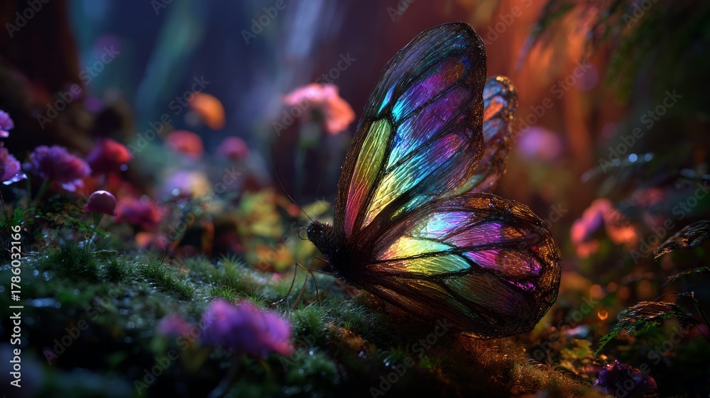 Ethereal Butterfly On Dewy Blooms At Dusk Ai Wallpaper Mural - Decorly Solutions | Decorly Solutions