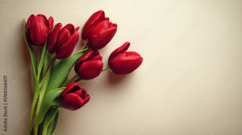 Romantic Arrangement Of Red Tulips On Light Background Wallpaper Mural - Decorly Solutions | Decorly Solutions