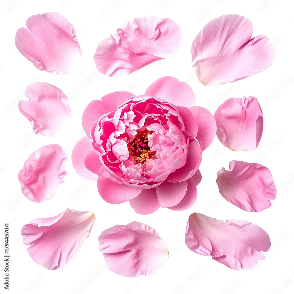 Pink Peony Flower With Surrounding Petals Isolated On Wallpaper Mural - Decorly Solutions | Decorly Solutions