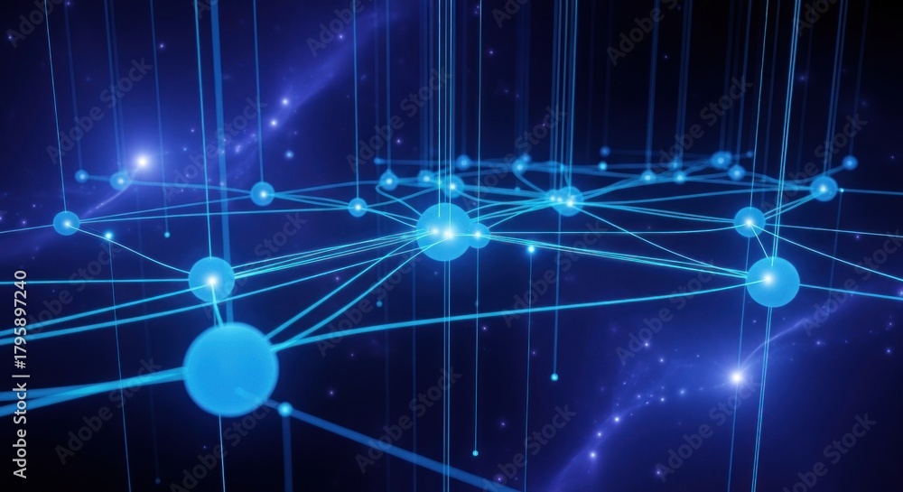 Abstract Digital Network Connections with Glowing Blue Lights.