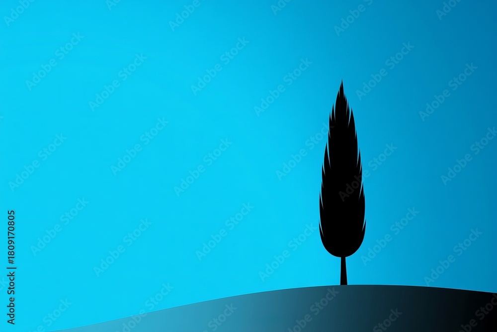 Cypress silhouette stands against a vibrant blue gradient sk Wallpaper