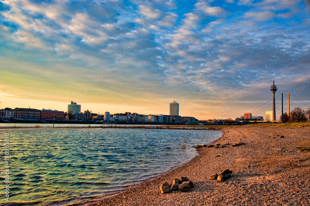 ドイツ・デュッセルドルフのライン川の朝焼け Wallpaper Mural - Decorly Solutions | Decorly Solutions