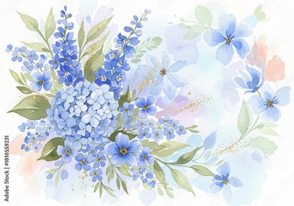 Watercolor Illustration Of A Beautiful Arrangement Of Blue Wallpaper Mural - Decorly Solutions | Decorly Solutions