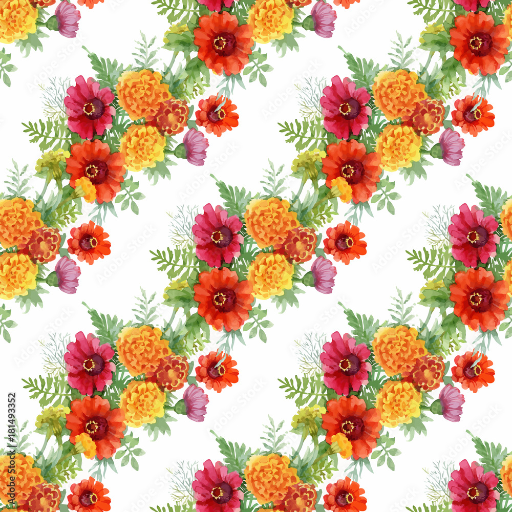 Watercolor Seamless Pattern With Colorful Flowers And Leaves Wallpaper Mural - Decorly Solutions | Decorly Solutions