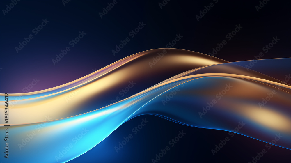 Abstract fluid waves with golden and blue gradients on a dar Wallpaper