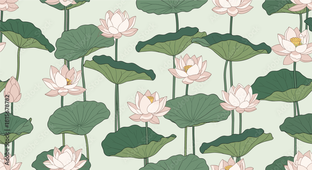 Elegant and serene seamless pattern of pink lotus flowers an Wallpaper