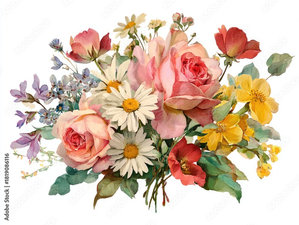 Watercolor illustration of a vibrant floral bouquet roses da Wallpaper