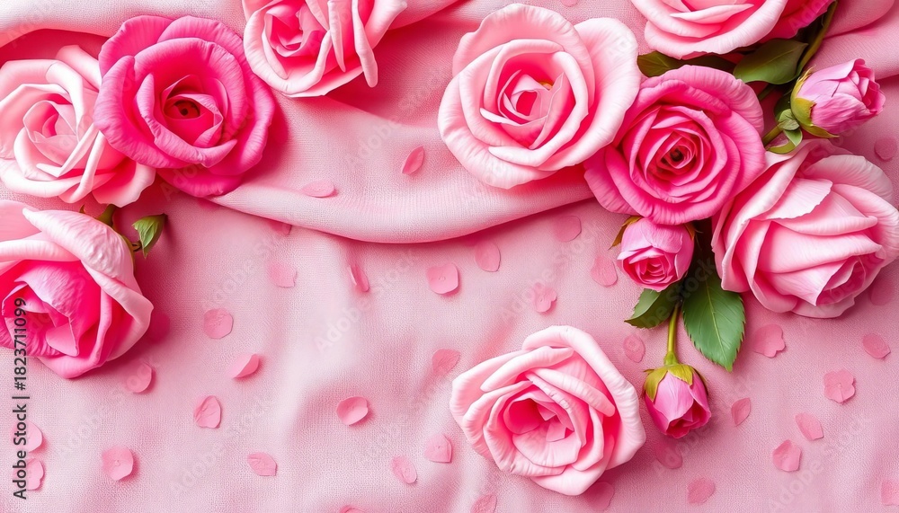 Delicate Dried Pink Roses Scattered On A Soft Pink Backdrop, Delicate, Vintage