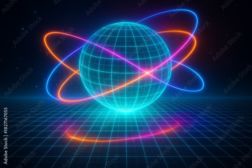 Glowing Sphere With Three Colorful Rings Surrounding It Wallpaper Mural - Decorly Solutions | Decorly Solutions