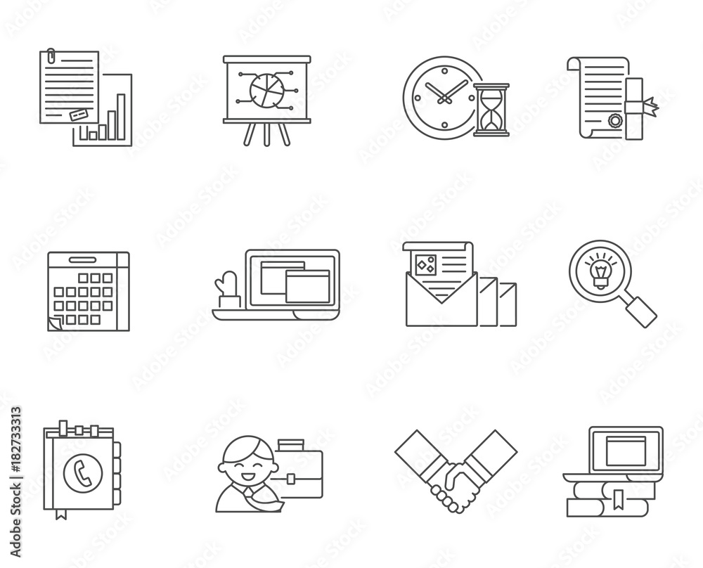 Business And Office Vector Icons Set Line Style Wallpaper Mural - Decorly Solutions | Decorly Solutions