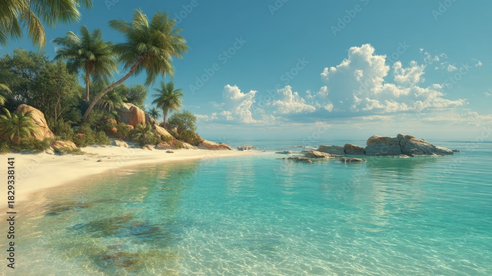 Bright Sunlight Shines On A Tropical Beach With Wallpaper Mural - Decorly Solutions | Decorly Solutions