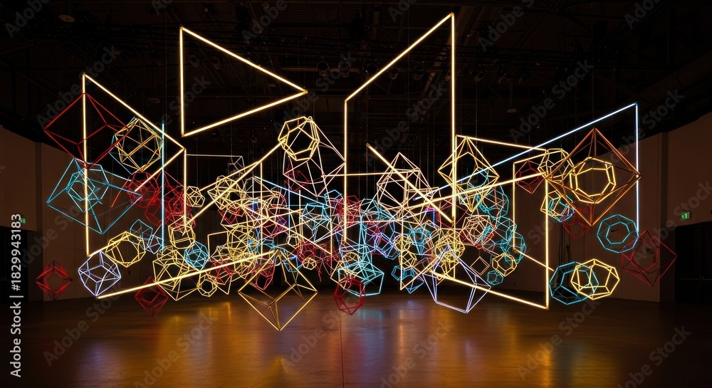 Illuminated Geometric Shapes Installation - A Modern Art Dis Wallpaper
