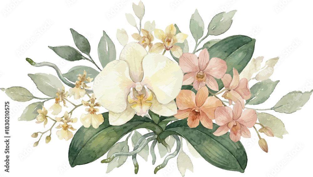 An Orchid Flower Ornament Watercolor For Invitation Border Wallpaper Mural - Decorly Solutions | Decorly Solutions