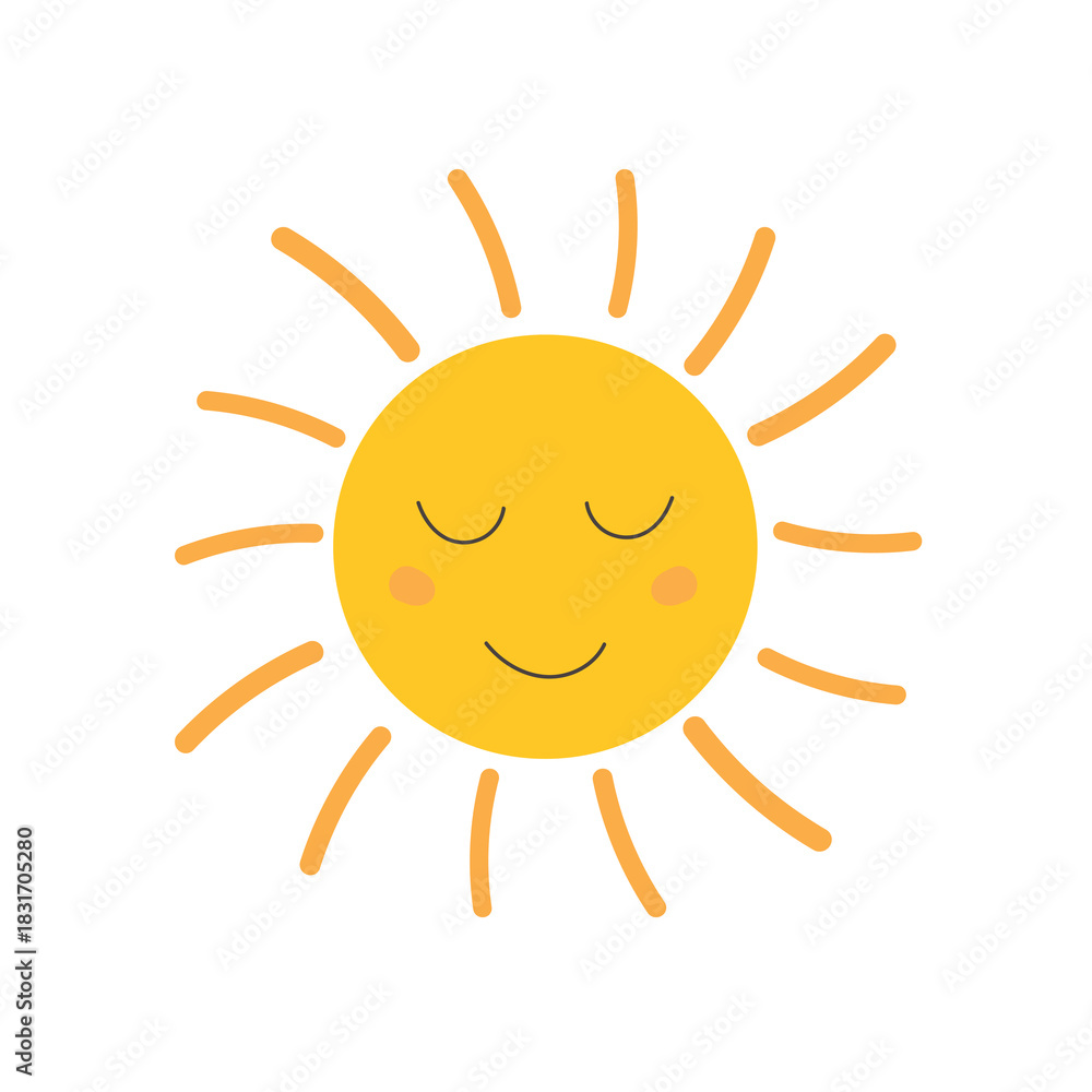 Cute Sun With Smile For Kids Isolated On Wallpaper Mural - Decorly Solutions | Decorly Solutions
