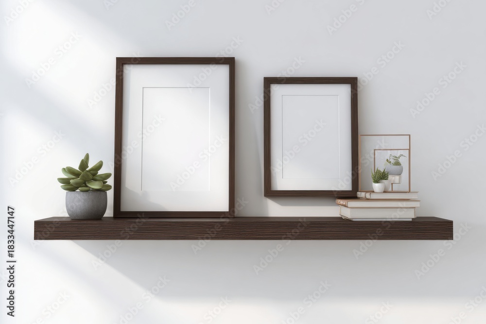 Minimalist Shelf With Picture Frames And Succulents Wallpaper Mural - Decorly Solutions | Decorly Solutions