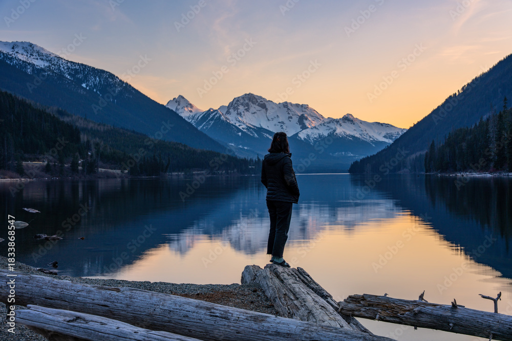 Woman Standing On Shoreline Watching Sunset Over Duffey Wallpaper Mural - Decorly Solutions | Decorly Solutions