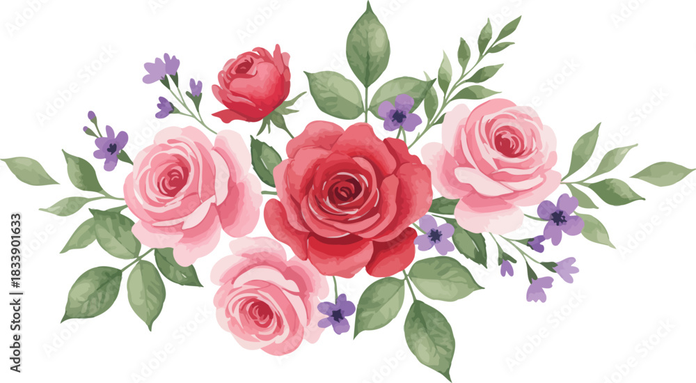 Beautiful Watercolor Bouquet Of Pink And Red Roses Wallpaper Mural - Decorly Solutions | Decorly Solutions