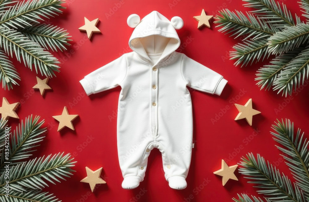 Christmas White Baby Girl Or Boy Bodysuit Mockup Wallpaper Mural - Decorly Solutions | Decorly Solutions
