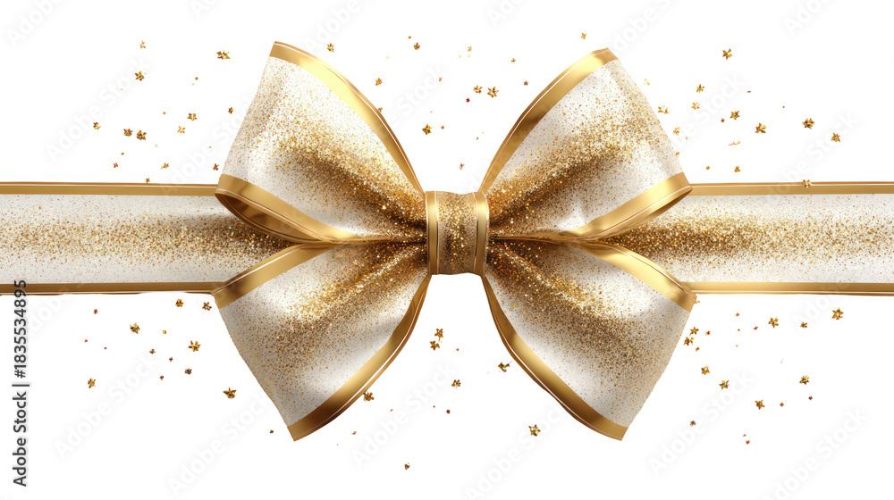 Elegant gold and white ribbon bow with glitter isolated on t Wallpaper