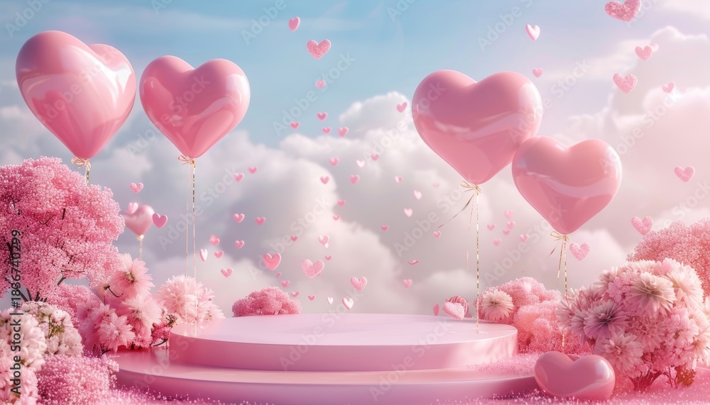 Valentine Pink Background With Heart Balloons And Product Wallpaper Mural - Decorly Solutions | Decorly Solutions