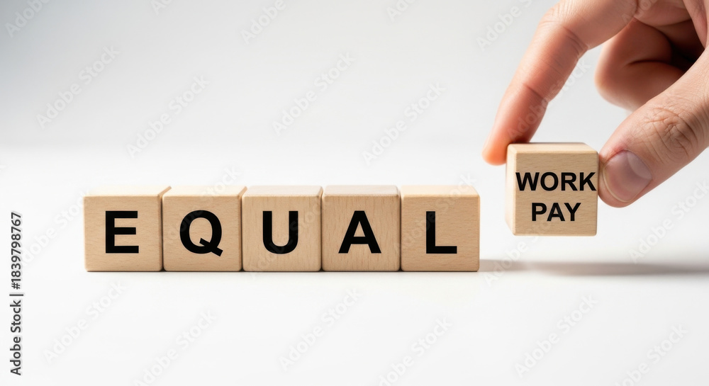 Message Equal Work Pay Constructed With Wooden Blocks Wallpaper Mural - Decorly Solutions | Decorly Solutions