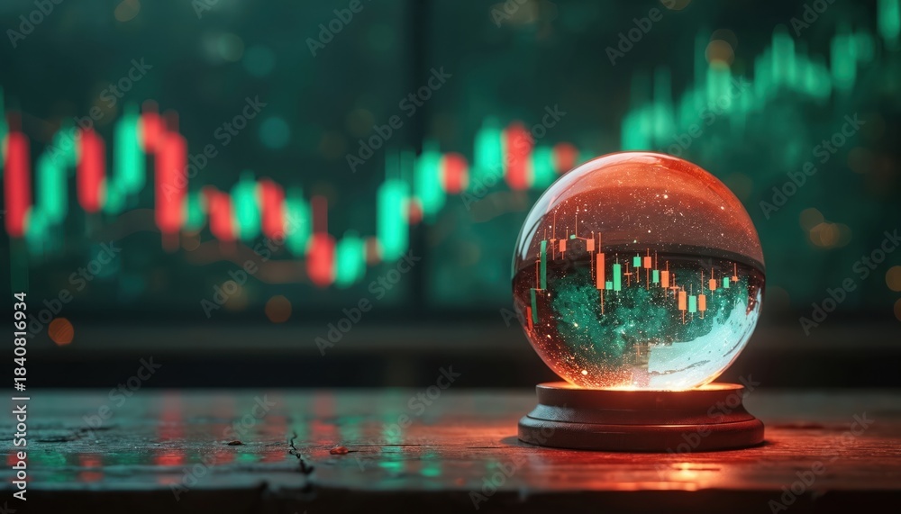 Crystal Ball Shows Stock Market Charts With Red Wallpaper Mural - Decorly Solutions | Decorly Solutions