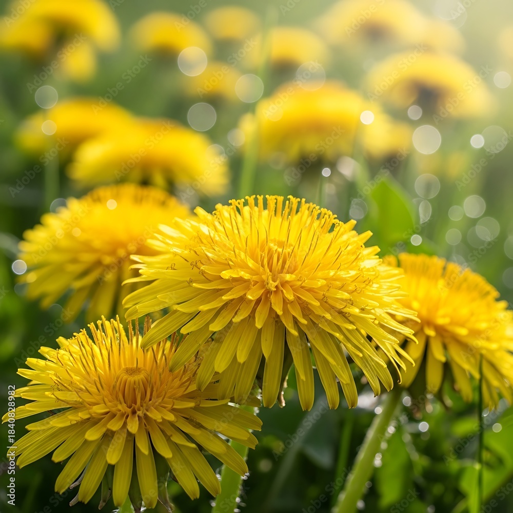Vibrant Yellow Dandelions In A Sunlit Meadow Showcasing Wallpaper Mural - Decorly Solutions | Decorly Solutions