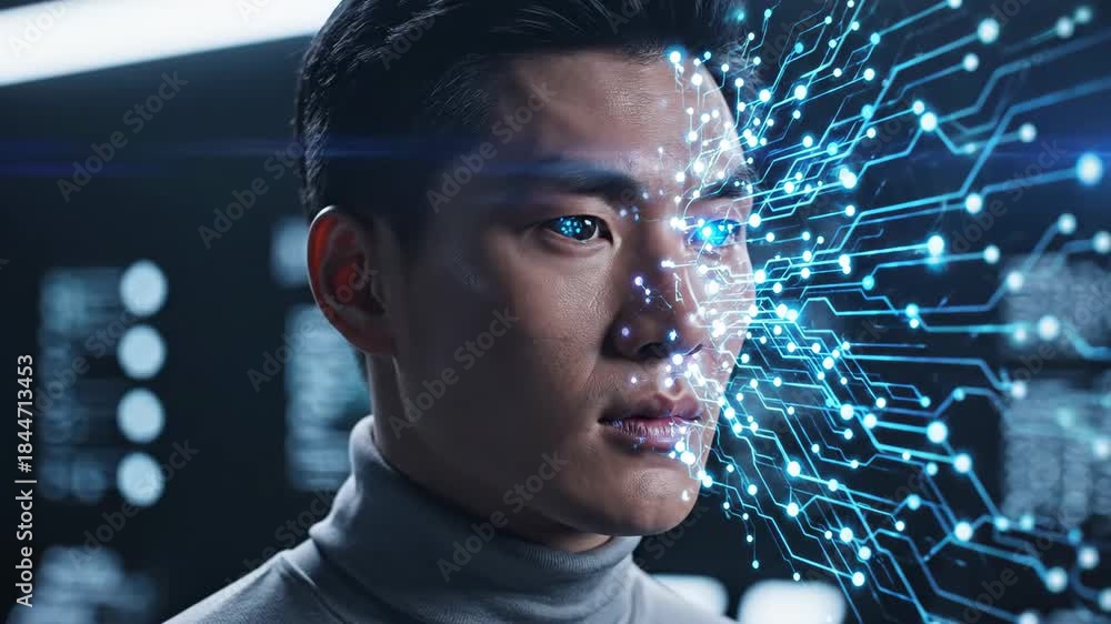 Futuristic Asian Man Interface - A Close-up Shot Wallpaper Mural - Decorly Solutions | Decorly Solutions