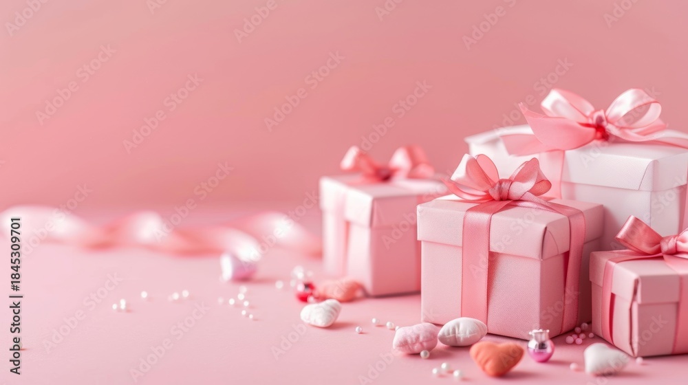 Minimal Pink Valentine Background With Gift Boxes And Wallpaper Mural - Decorly Solutions | Decorly Solutions