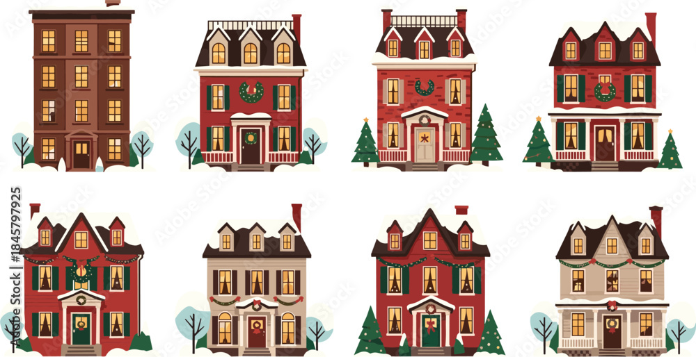 Christmas House Vector Set With Festive Decorations Snow-covered Wallpaper Mural - Decorly Solutions | Decorly Solutions