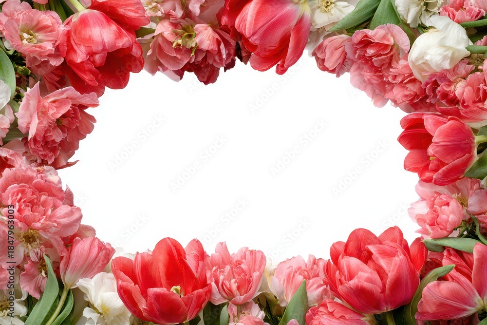 Vibrant Floral Border Of Red Tulips And Pink Wallpaper Mural - Decorly Solutions | Decorly Solutions