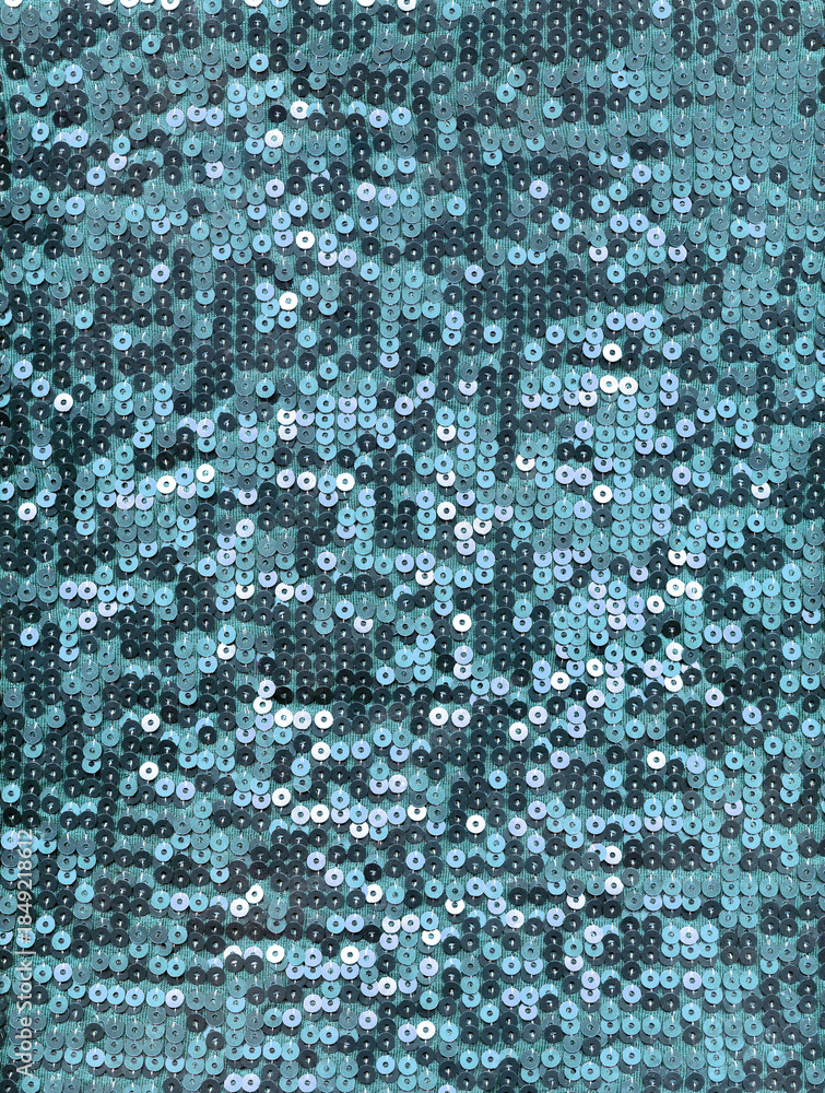 Teal blue sequin fabric texture with reflective shimmering d Wallpaper