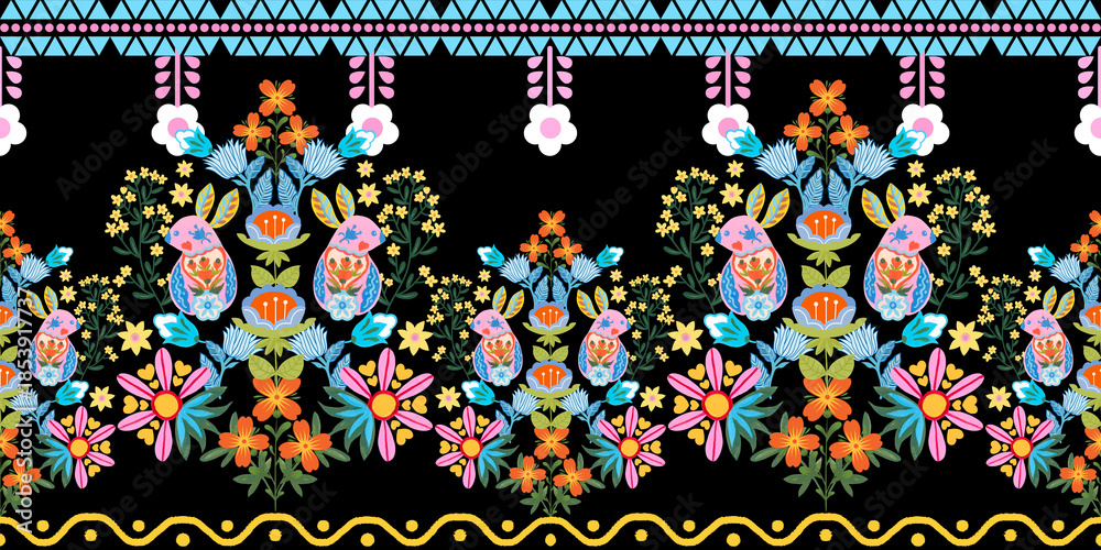 The Beautiful Of Flower With Animal Folklore Ornament Wallpaper Mural - Decorly Solutions | Decorly Solutions
