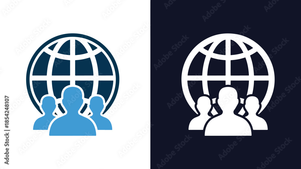 Global interaction icon set - Blue icon set - Modern style icon - Vector icon set - Glyph and solid icon set - Icon vector - Flat Design Icon - Stock illustration