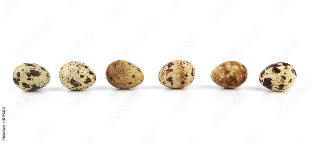 Quail eggs isolated on white background Natural patterned fa Wallpaper