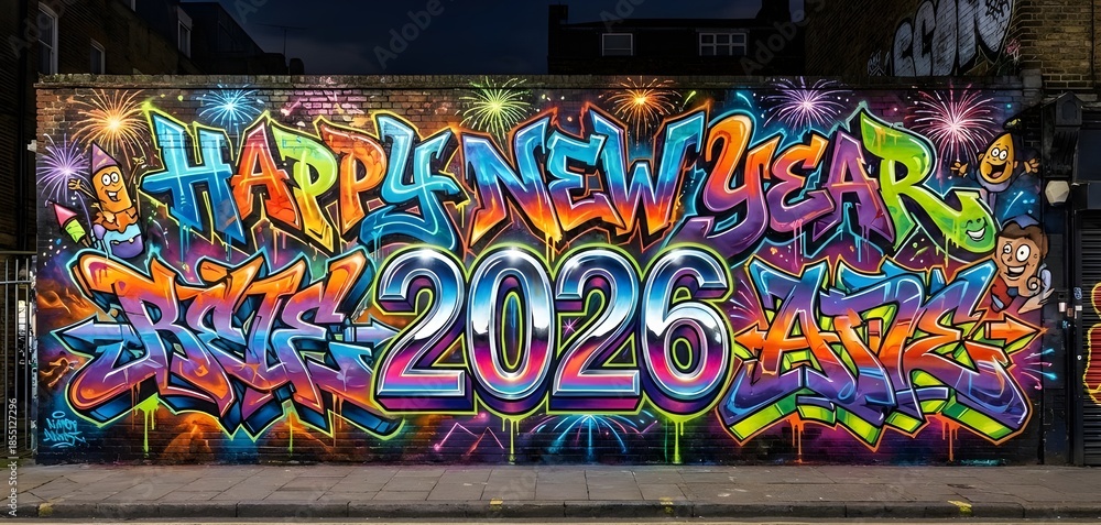 Graffiti On The Wall Happy New Year 2026 Wallpaper Mural - Decorly Solutions | Decorly Solutions