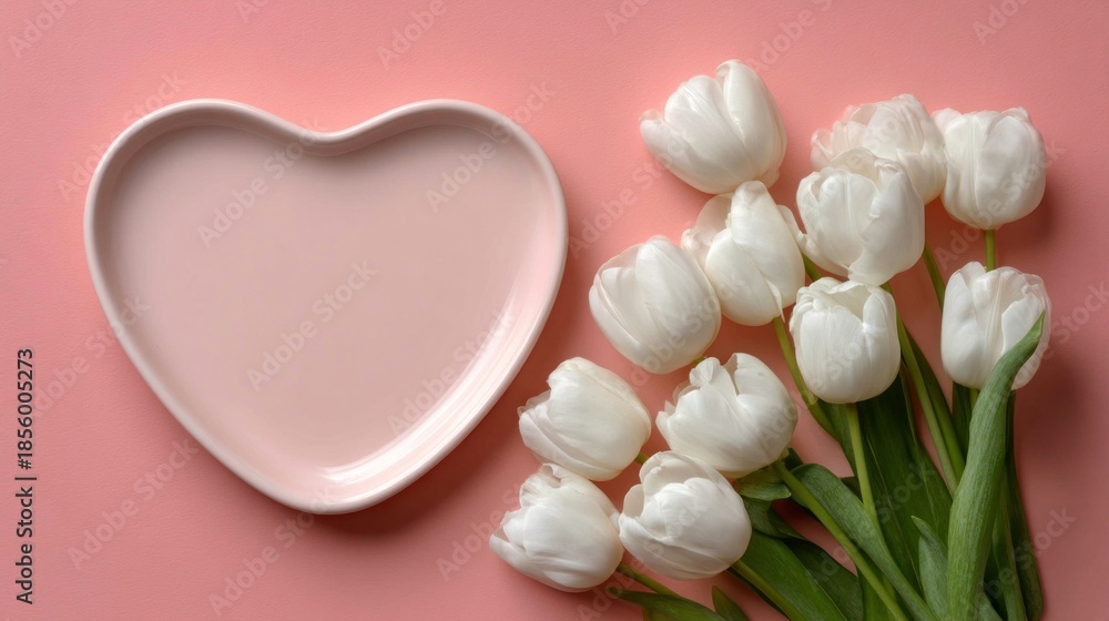 A heart shaped plate with white flowers on it The flowers ar Wallpaper