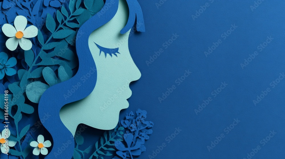 Paper-cut Profile Of Woman With Floral Hair In Wallpaper Mural - Decorly Solutions | Decorly Solutions