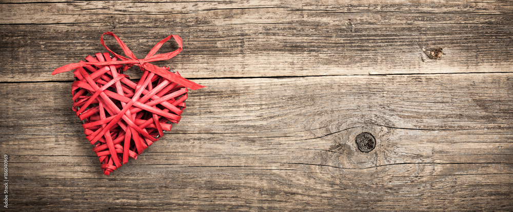 Red wicker heart on wooden background Wallpaper
