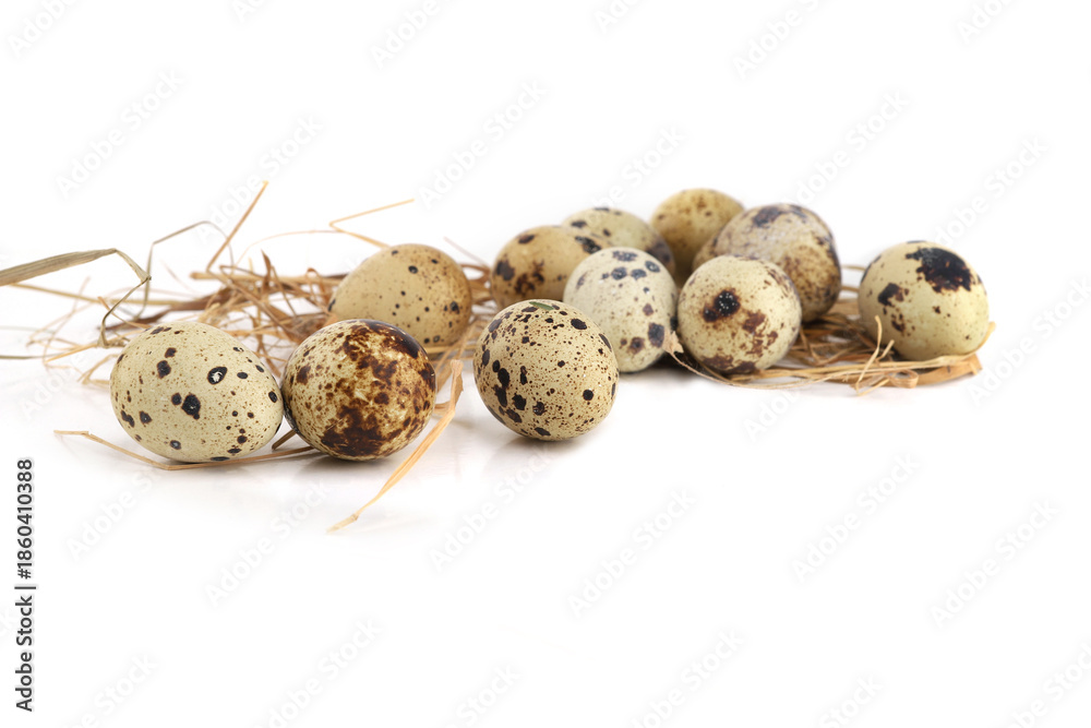 Quail Eggs On Straw Isolated On White Background Wallpaper Mural - Decorly Solutions | Decorly Solutions
