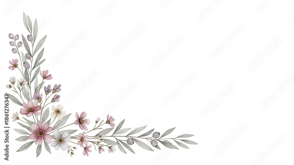 Delicate Luxury Watercolor Corner Border With Wildflowers And Wallpaper Mural - Decorly Solutions | Decorly Solutions