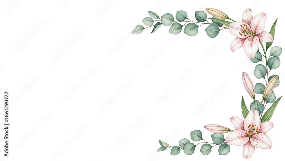 Elegant hand painted watercolor corner frame featuring lilie Wallpaper